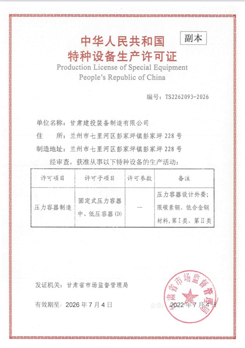 裝備公司在對省十四次黨代會精神集中學習的基礎上,圍繞“強科技、強工業、強省會、強縣域”的“四強”行動戰略,立足做強第一產業這一發展目標,在特種設備資質取證工作上持續發力,于近日成功取得特種設備制造許可證書,該資質可生產固定式壓力容器中、低壓容器(D)級產品,壓力范圍0.1MPa≤P<10MPa,包括碳素鋼、低合金鋼材料第I類、第II類產品。